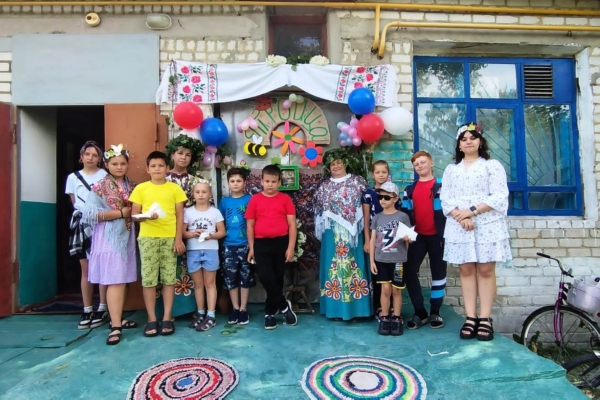 Все вместе завивали березку, плели венки, водили хороводы. Ребята активно принимали участие в конкурсах, отвечали на вопросы познавательной викторины. Завершилось мероприятие чаепитием с пирогами.
