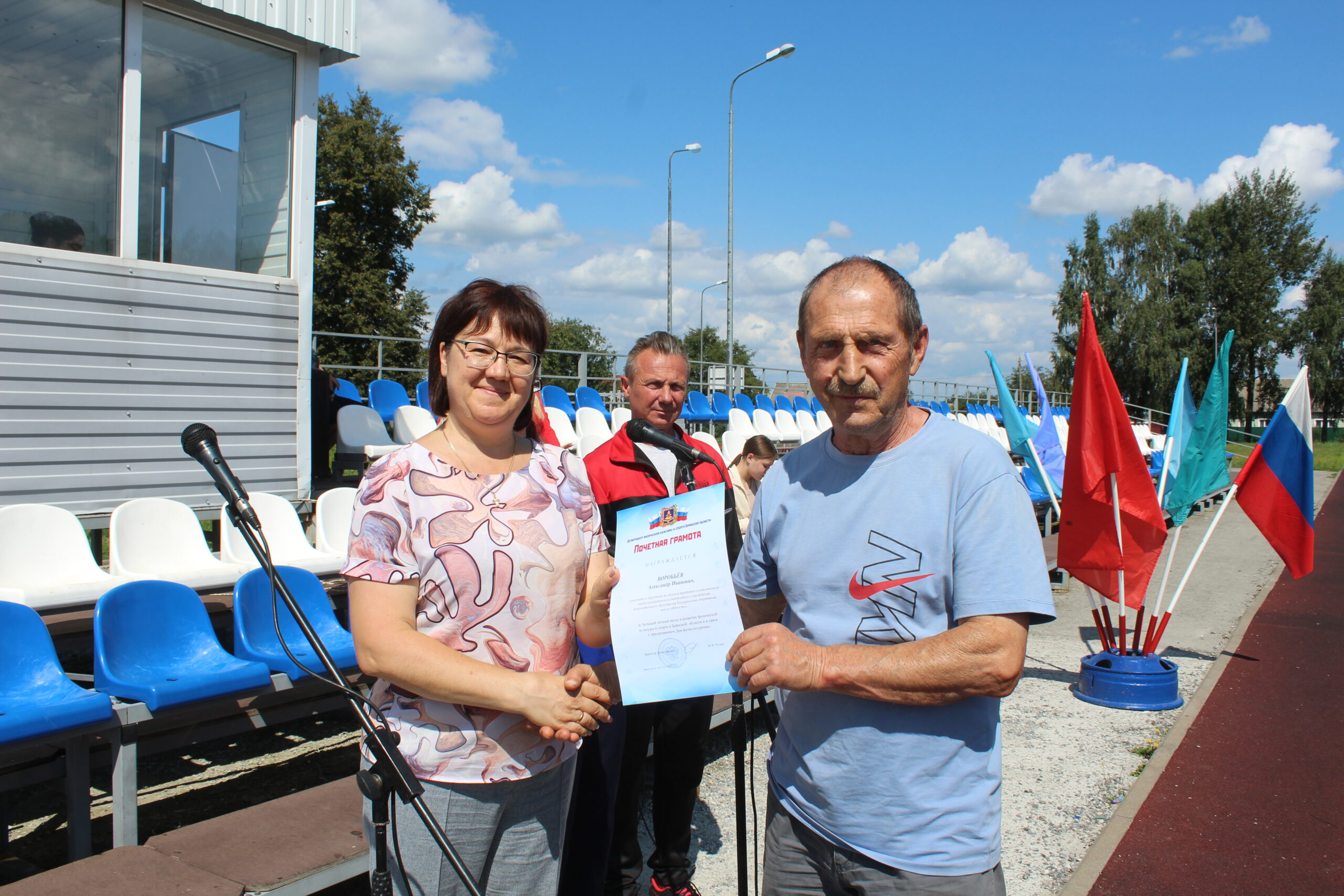 Светлана Николаевна также вручила грамоты Департамента физической культуры и спорта Брянской области и Администрации Комаричского района сотрудникам спортивной школы и лучшим спортсменам Комаричского района. Также были вручены знаки ГТО успешно прошедшим контрольные испытания.