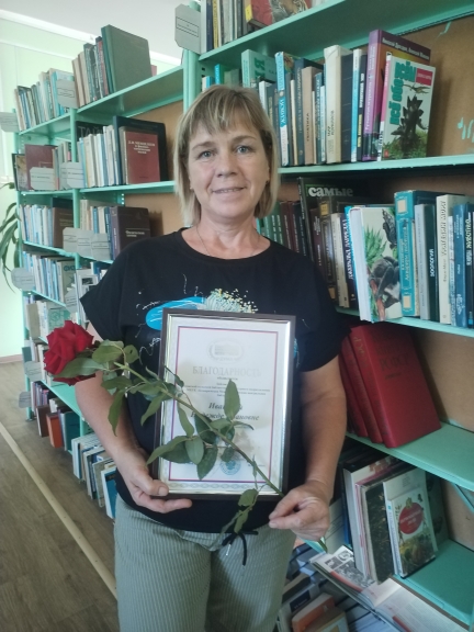 6 сентября врио главы администрации Комаричского муниципального района Светлана Николаевна Олешко за многолетний и добросовестный труд вручила Ивановой Надежде Ивановне, библиотекарю Усожской сельской библиотеки, Благодарность Брянской областной Думы и тепло поздравила с заслуженной наградой.