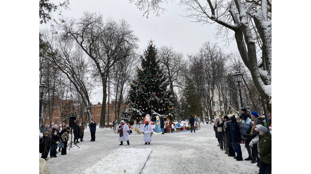 Украшали гирляндами с 3000 лампочек. Ночью лесная красавица выглядит грандиозно, но и днём от дефицита внимания не страдает. Праздник продолжается, школьные пары Мороз и Снегурка покажут свои сценки, чтобы определить лучших из лучших.