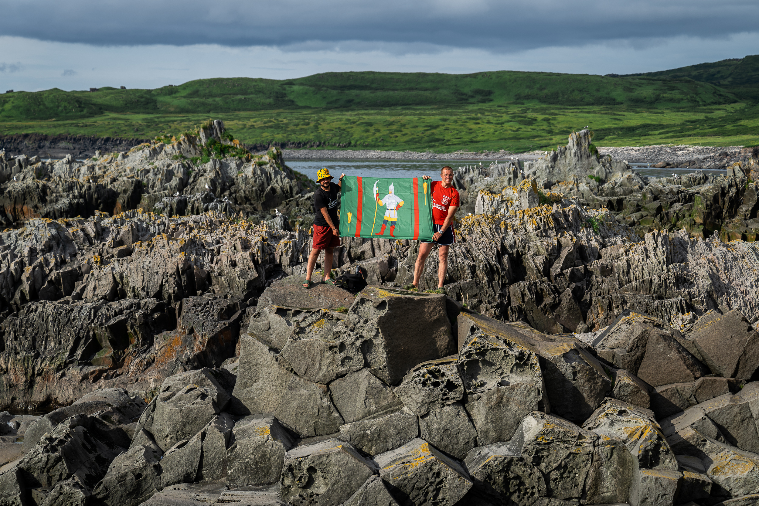 Роман и Артур не просто наслаждались красотами Парамушира, но и выполнили важную миссию: они развернули флаг Комаричского района и флаг движения «Патриоты Наследия» на фоне величественных вулканов и бескрайнего Тихого океана. Этот символический жест стал выражением гордости за свой родной край и стремления сохранить его историю и культуру.